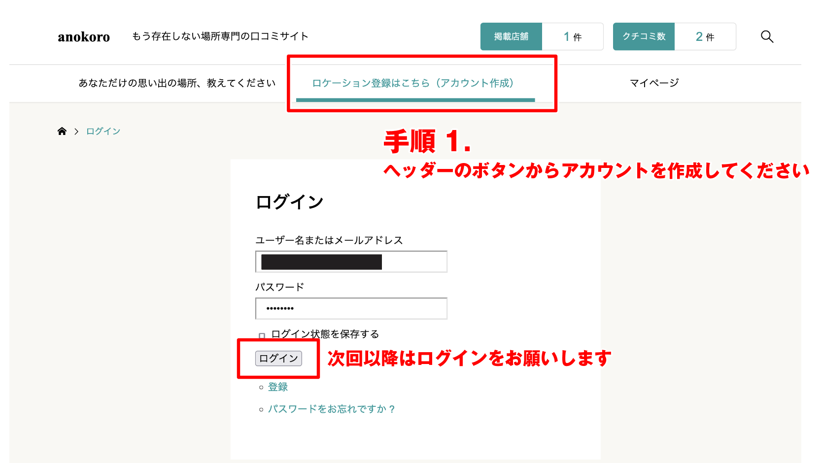 アカウントを登録後、ログインしてください。